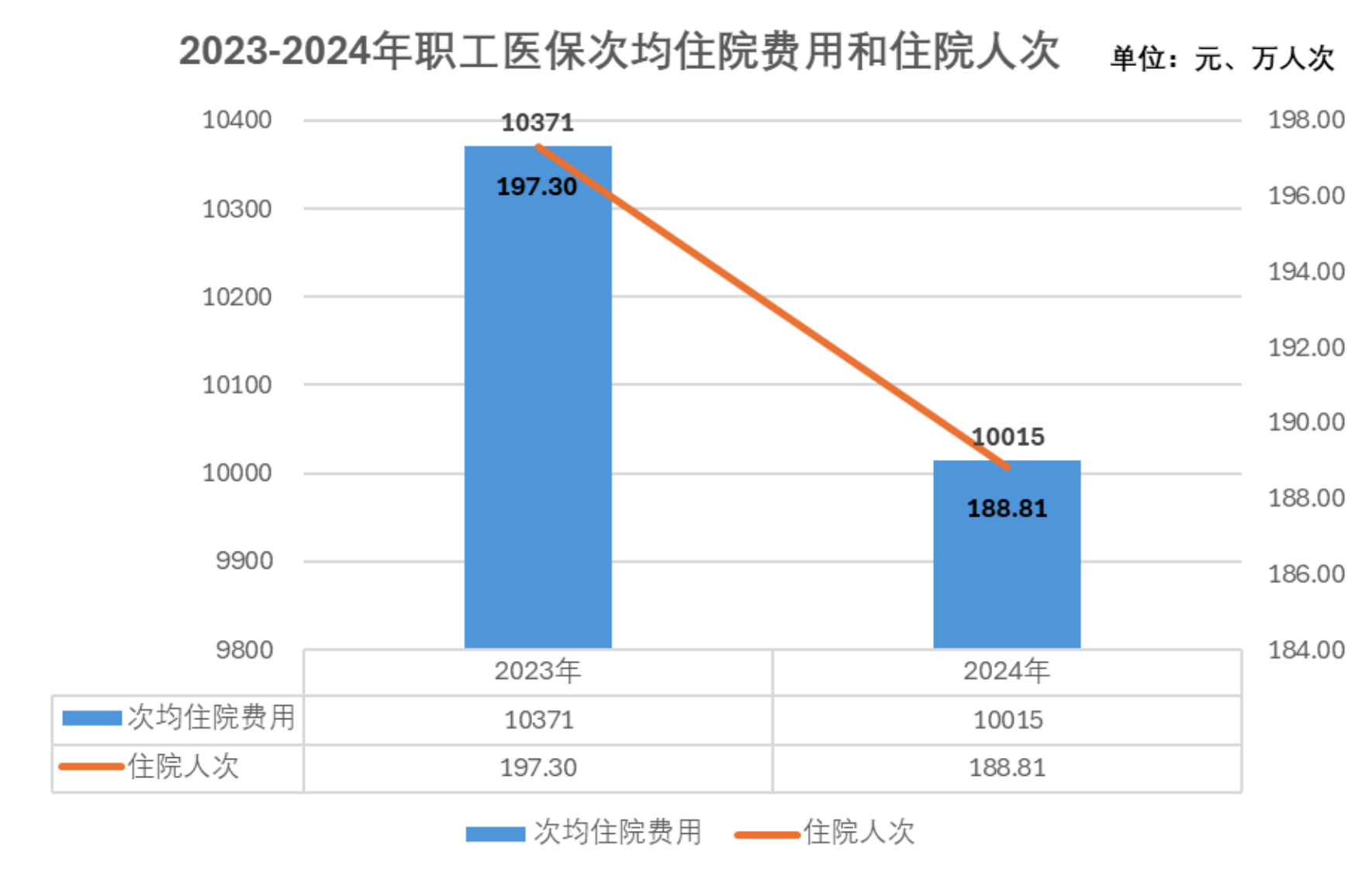 2024年,职工医保参保人员次均住院费用为10015元,其中三级、二级、一级及以下医疗机构(含未定级)的次均住院费用分别为12389元、6098元和2666元。次均住院床日8.29天,其中三级、二级、一级及以下医疗机构(含未定级)次均住院床日分别为8.28天、9.08天、6.73天。