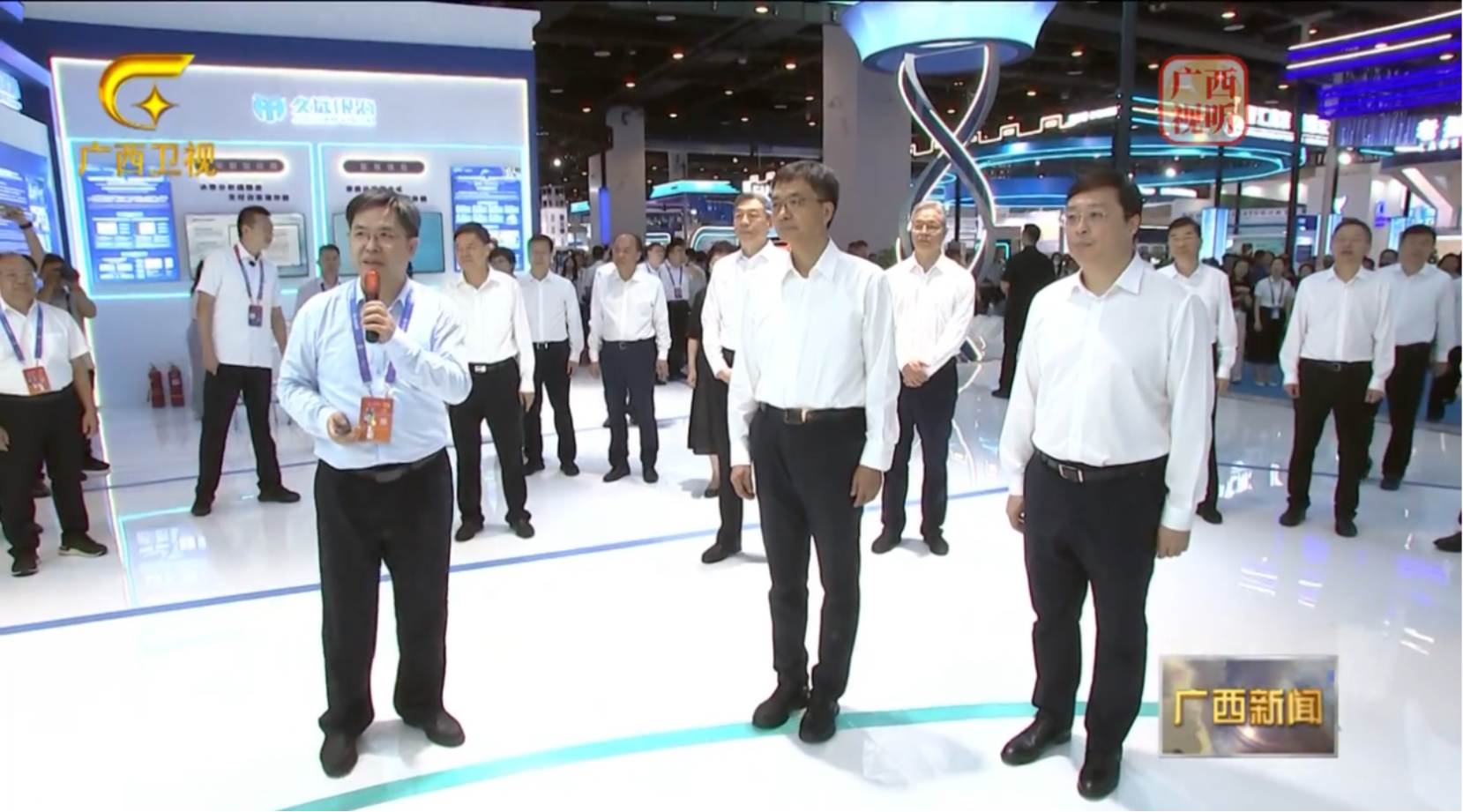 9月19日,自治区党委书记、自治区人大常委会主任陈刚,自治区主席韦韬,自治区政协主席孙大伟,自治区党委副书记王维平等自治区四家班子领导来到南宁国际会展中心,巡视第22届中国—东盟博览会展馆,与参展客商亲切交流。期间,陈刚、韦韬、孙大伟等领导到“人工智能+医保健康”专题展区参观指导。足球比分网 党组书记、局长庞军在展区介绍“人工智能+医保健康”专题展情况。