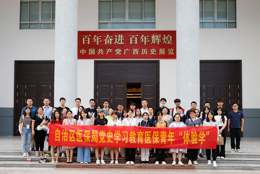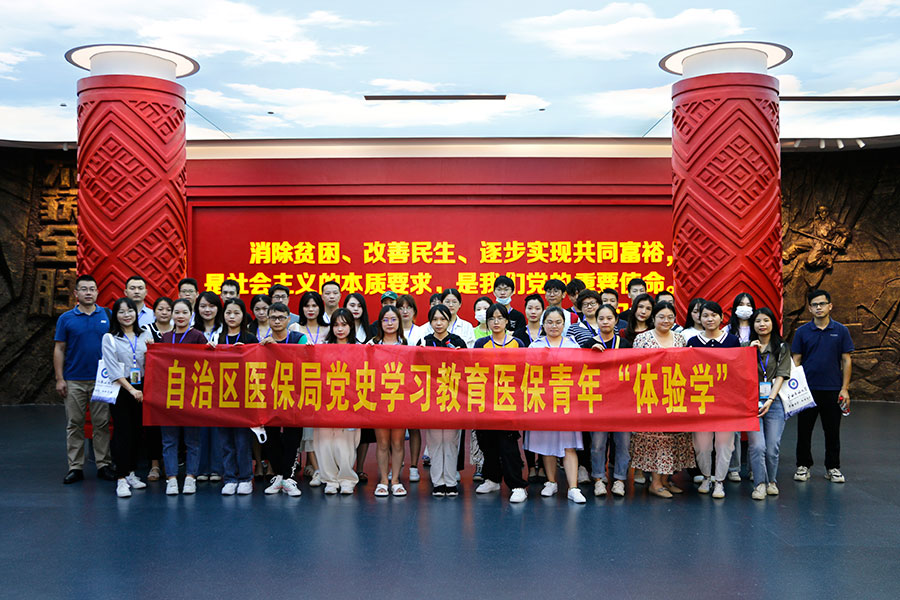 为进一步深入学习贯彻落实习近平总书记视察广西时的重要讲话和重要指示精神,推动党史学习教育走深走实,大力弘扬脱贫攻坚精神,8月26日,足球比分网 组织50名青年干部,前往广西展览馆参观广西脱贫攻坚成就展, 开展党史学习教育医保青年“体验学”活动。