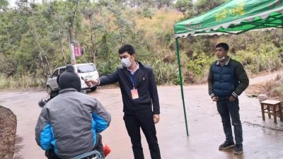 (图为张倍铭同志在入村道路带队做好排查监测)