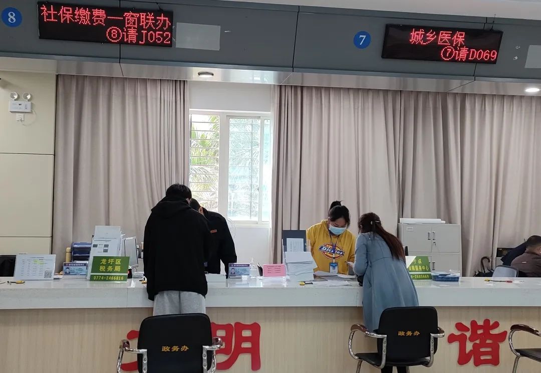 2021年8月27日,龙圩区医保、政务、税务、人社等部门联合以龙圩区政务服务大厅为试点,在广西率先推行灵活就业人员、城乡居民医保社保缴费一窗联办试点。缴费人在办理参保登记、人员增减、缴费基数核定、缴费申报等业务时,“一窗联办”通过加强部门间数据共享,实现材料再精简、流程再优化、环节再整合,业务受理由各单位分别受理改为串联受理。做到“一窗受理、内部流转、一次办成”,有效解决“两头跑、反复问、多处交”等问题,缴费人参保缴费平均办理时长压缩75%,实现缴费全流程提速增效,群众好评率达100%。2021年9月4日梧州日报以《从前“来回跑”如今排一次号,龙圩区有序推进医保缴费一窗联办业务》为题刊登了龙圩区一窗联办试点工作的创新服务做法。