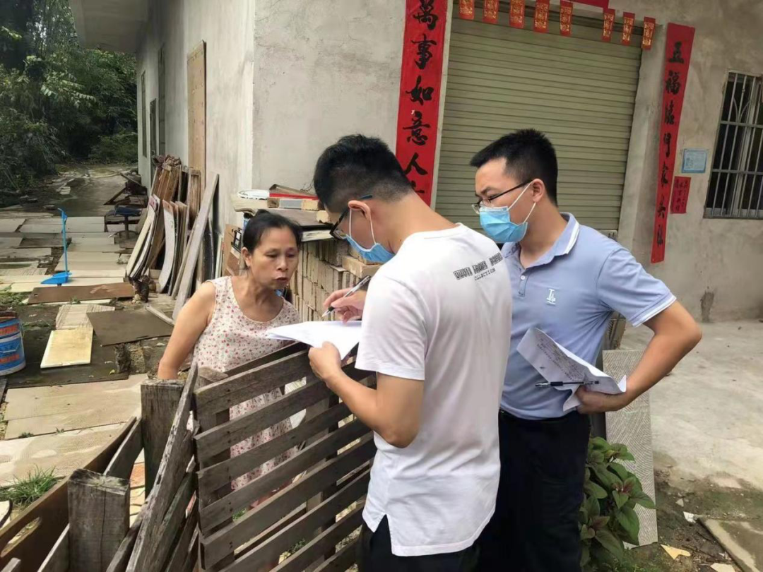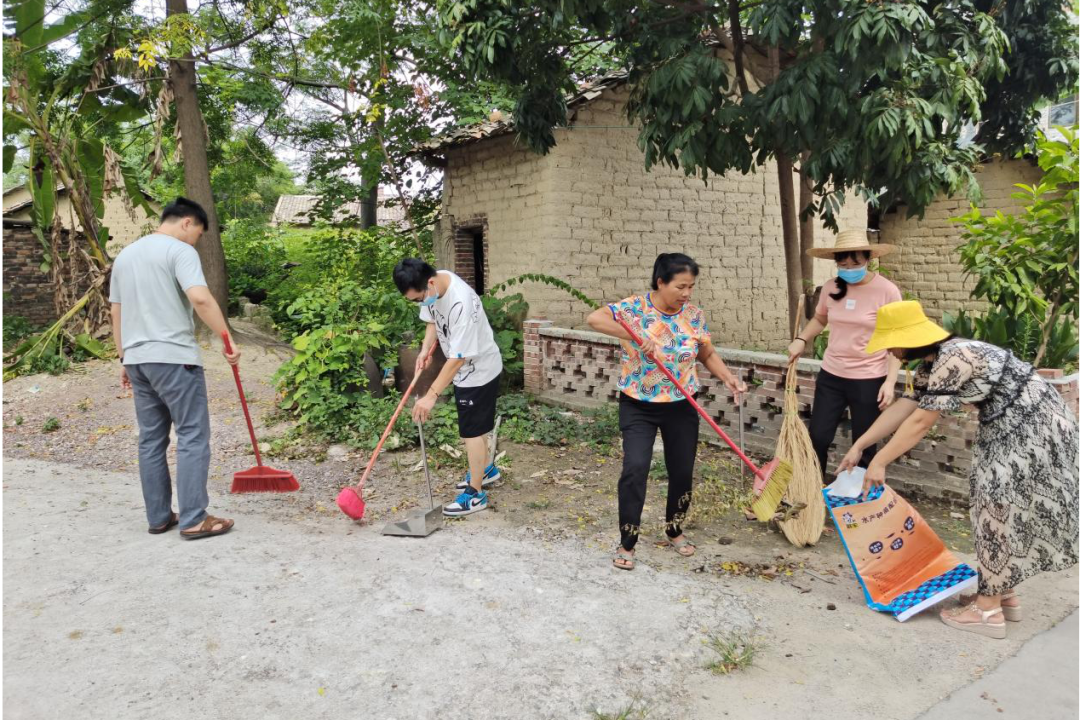 2021年夏,赵琨(左二)跟同事到仁东镇中庞村开展乡村振兴相关工作。