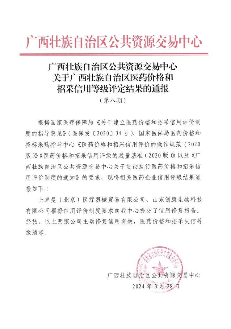 广西公共资源交易中心医药价格和招采信用评价历史通知