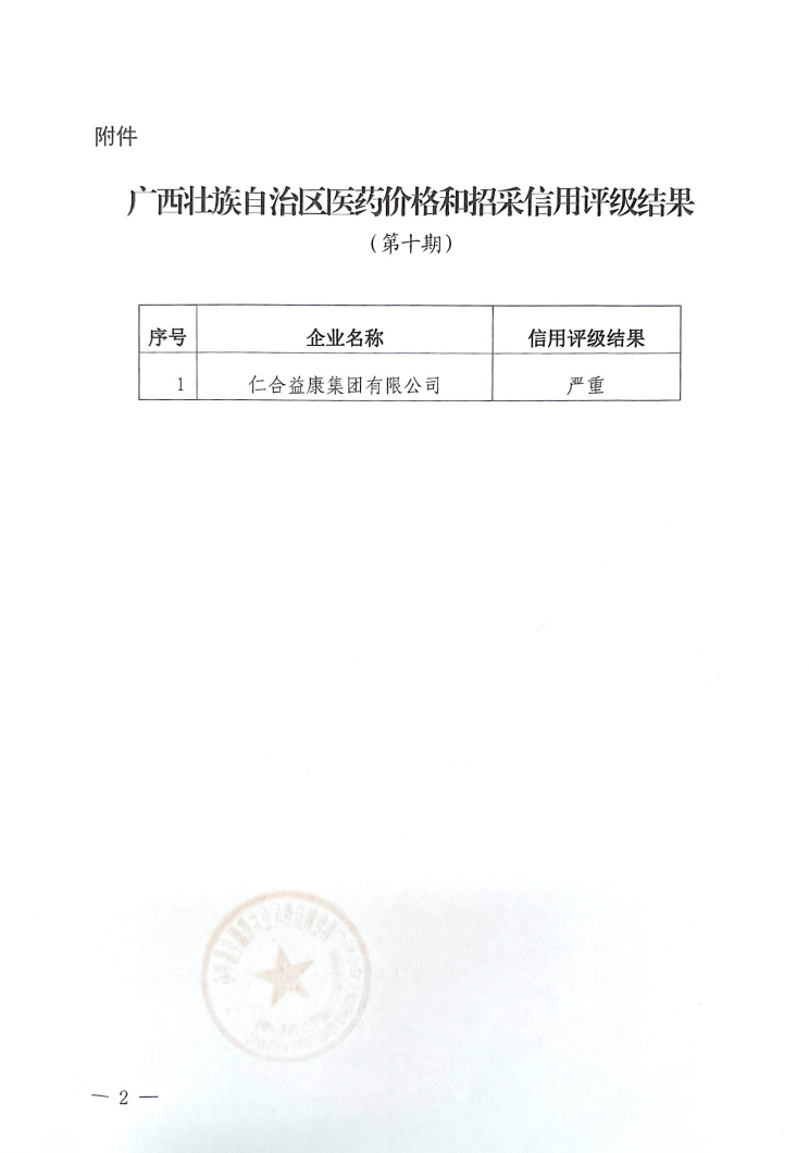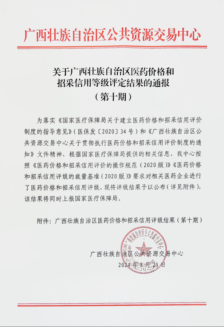 【信用评价】关于广西壮族自治区医药价格和招采信用等级评定结果的通报(第十期)