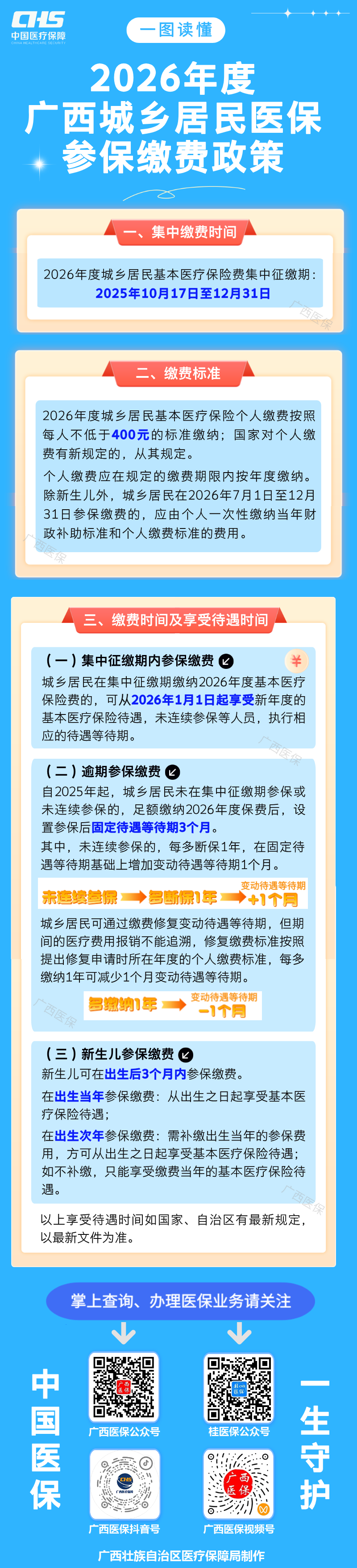 一图读懂 | 2026年度广西城乡居民医保参保缴费政策