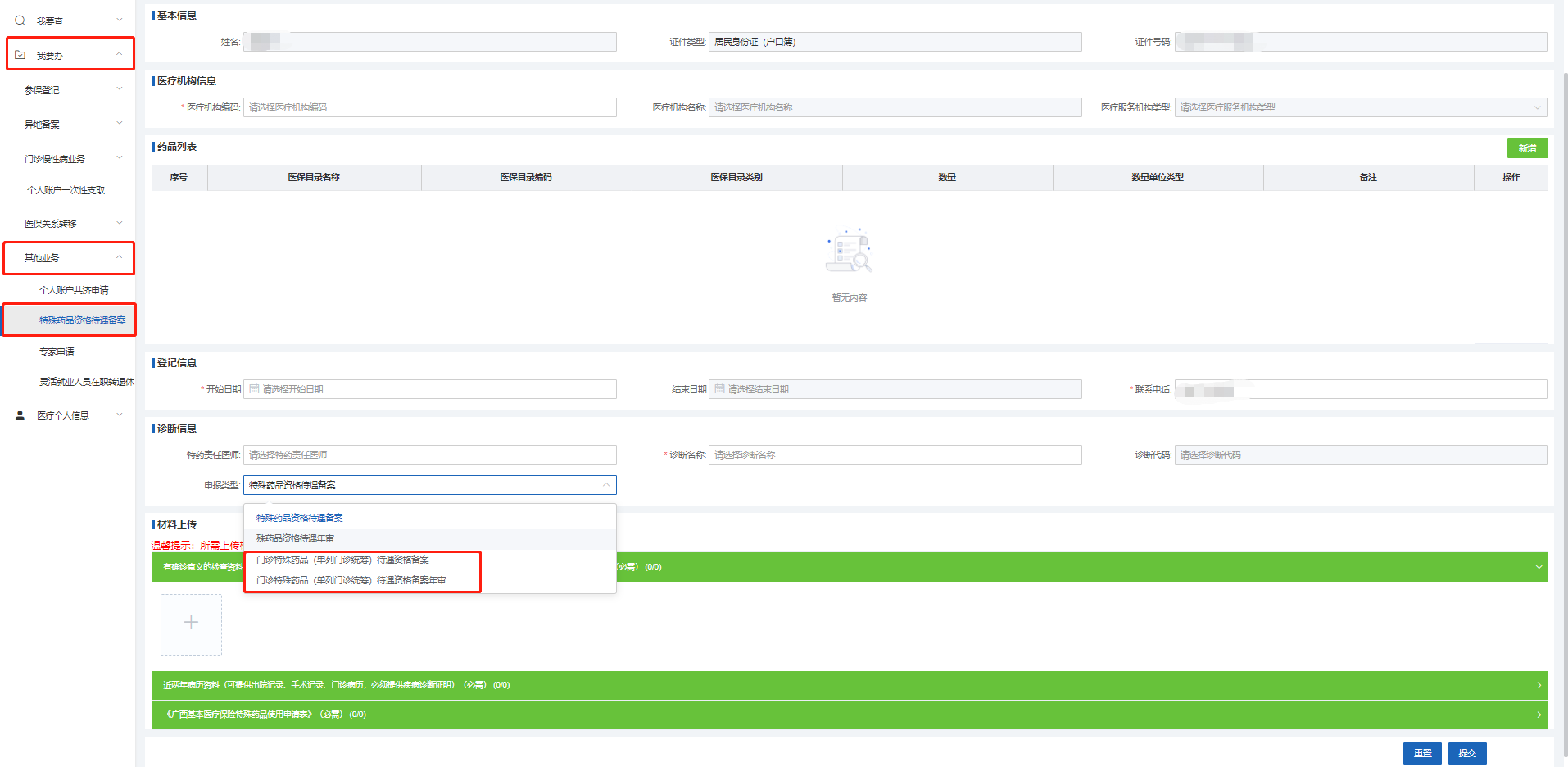 1. 已开通特药登记服务的异地定点医疗机构办理:申报材料提交至定点医疗机构医保科。