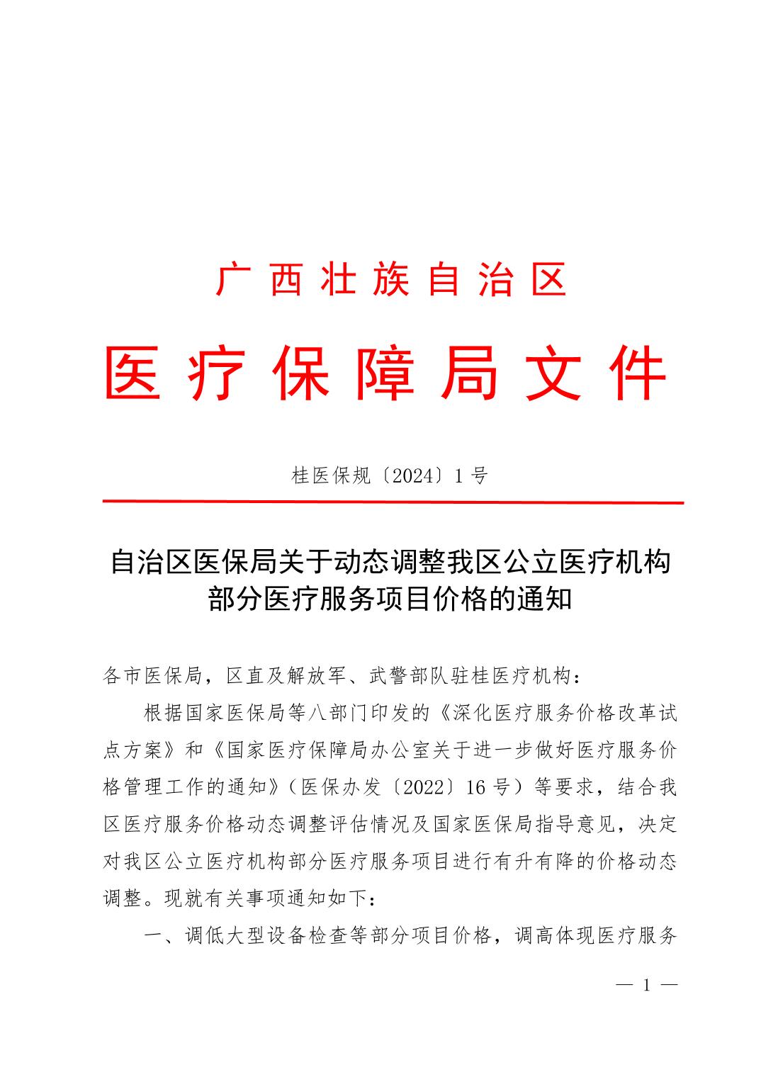 足球比分网 关于动态调整我区公立医疗机构部分医疗服务项目价格的通知(桂医保规〔2024〕1号)